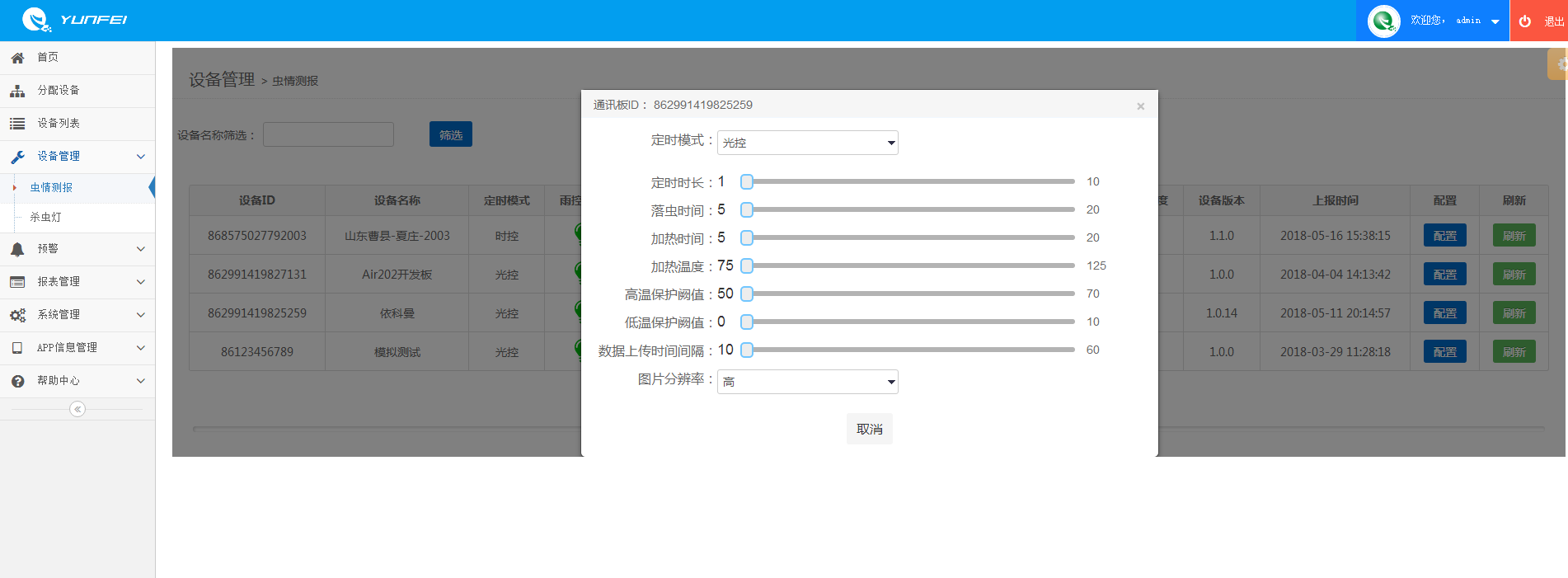 拍照式太陽(yáng)能全自動(dòng)蟲(chóng)情測(cè)報(bào)燈 YT-CQ04 軟件平臺(tái)界面: