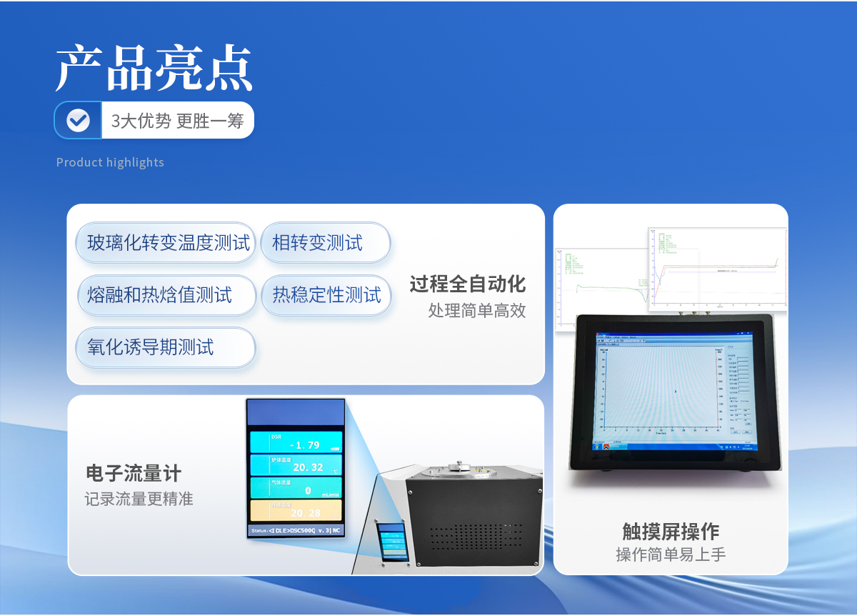 該差示掃描量熱儀為觸摸屏式,主要針對塑料行業訂制,可測各種塑料的熔融、塊狀、 顆粒、薄膜、管道、套管等熔點的測試。