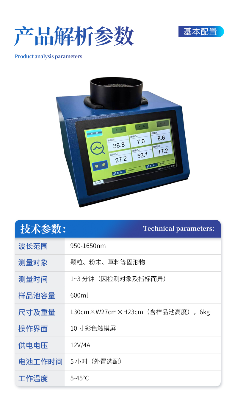 產(chǎn)品介紹: 產(chǎn)品介紹:近紅外光譜分析儀,是針對(duì)原糧、食品、飼料等行業(yè)開(kāi)發(fā)的專(zhuān)用 檢測(cè)設(shè)備,可無(wú)損、快速、準(zhǔn)確地檢測(cè)樣本的水分、脂肪、蛋白質(zhì)等多種指標(biāo)。儀器重量輕體積小,既可作為實(shí)驗(yàn)室檢測(cè)儀器,又···2025-10-26