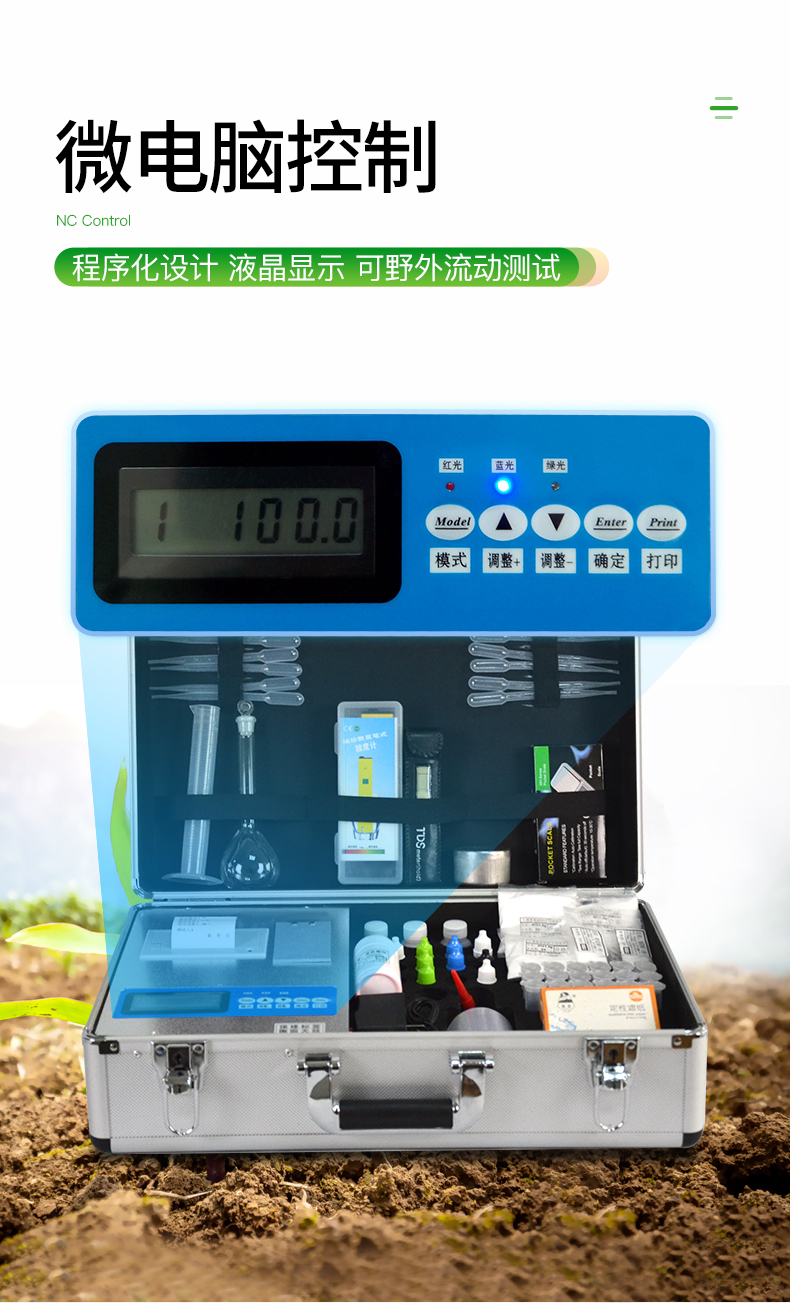 配套齊全,該儀器集藥、器、儀為一體,攜帶方便,相當于一個小型實驗室,用戶只需提供蒸餾水即可在要求時間內完成全部操作。