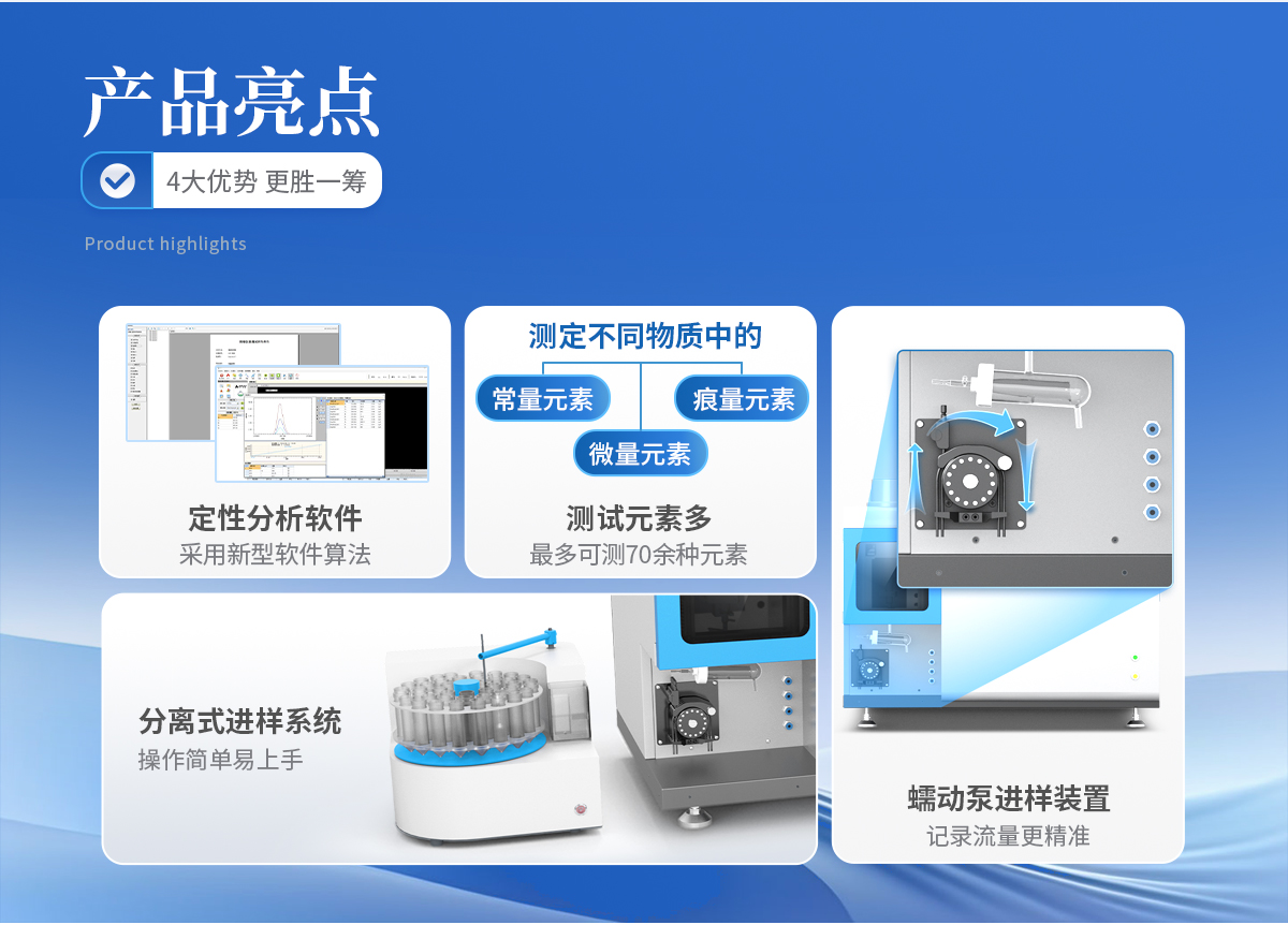 1、進(jìn)樣系統(tǒng) 1.1 加長型霧室,保證高靈敏度的情況下有效降低背景噪聲,低記憶效應(yīng)。 1.2 **同心圓霧化器,霧化效率高、重復(fù)性好,記憶效應(yīng)弱,可直接自吸進(jìn)樣。 1.3 快速拆卸式炬管,搭配自主研發(fā)的炬管工裝,可一秒實(shí)現(xiàn)炬管的準(zhǔn)確定位,減少因更換 炬管帶來的位置誤差影響測試性能。 1.4 蠕動(dòng)泵為 5 通道 16 滾軸全自動(dòng)設(shè)計(jì),蠕動(dòng)泵轉(zhuǎn)速連續(xù)可調(diào)。確保穩(wěn)定進(jìn)樣的同時(shí),可 支持進(jìn)樣、排廢、在線內(nèi)標(biāo)和其他試劑進(jìn)樣管(氫化物發(fā)生器)同時(shí)運(yùn)行。 1.5 分腔體式進(jìn)樣系統(tǒng),炬管和霧室在不同的空間內(nèi),減少炬管高溫對(duì)霧化的影響,也可以 直接觀察樣品的進(jìn)行,便于實(shí)時(shí)排除異常情況。 1.6 多種類型的霧化器、霧室及炬管可選,可實(shí)現(xiàn)有機(jī)、高鹽、高靈敏、耐 HF 酸等不同進(jìn) 樣需求,方便更換與維護(hù)。 1.7 集成氣路全自動(dòng)控制,采用精密質(zhì)量流量控制器控制多路氣體流量,精度 0.01L/min。 1.8 缺氣氣保護(hù)功能,儀器在氣源耗盡的情況下自動(dòng)熄火,并通過嗡鳴器實(shí)時(shí)發(fā)出報(bào)警聲音。 1.9 火焰視頻監(jiān)測,儀器配置了靈敏度高的火焰?zhèn)鞲邢到y(tǒng),以及可視化視頻監(jiān)測攝像頭, 可以實(shí)時(shí)觀測燃燒室火焰狀態(tài),并在熄火時(shí)自動(dòng)關(guān)閉射頻電源,保護(hù)儀器重要部件。 1.10 可視化的儀器運(yùn)行狀態(tài)監(jiān)控模塊,可對(duì)儀器各組成部件的運(yùn)行情況進(jìn)行監(jiān)測,判斷故 障原因,便于各部件的正常運(yùn)行。