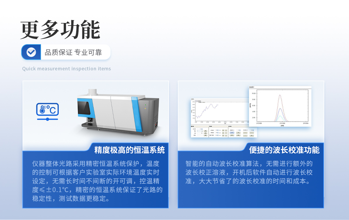 智能的自動(dòng)波長校準(zhǔn)算法,開機(jī)后軟件自動(dòng)進(jìn)行波長校準(zhǔn),大大節(jié)省了的波長校準(zhǔn)的時(shí)間和成本。 12、精密的分光系統(tǒng)