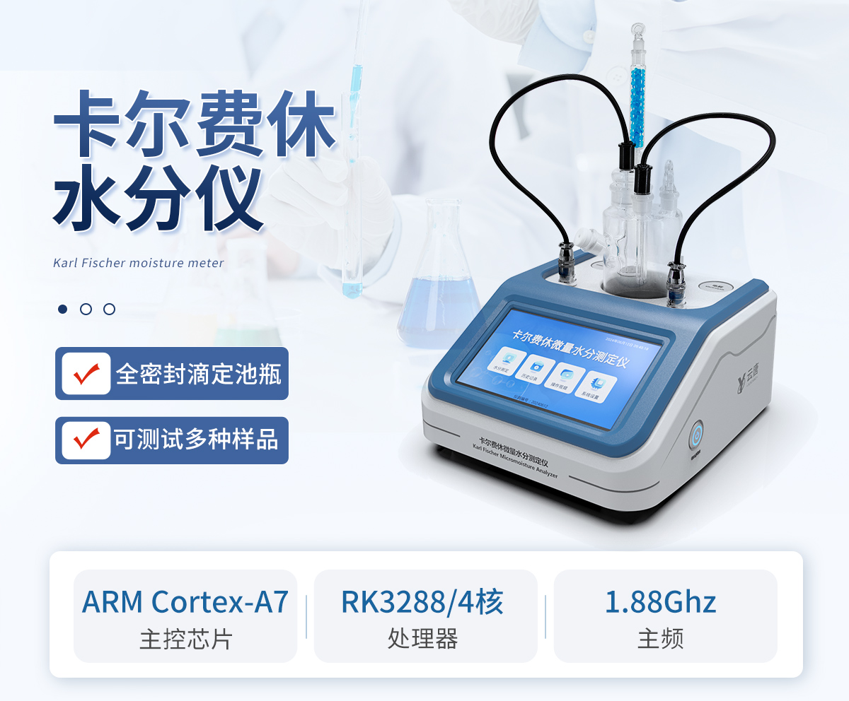 | 1.儀器主控芯片采用ARM Cortex-A7,RK3288/4核處理器,主頻1.88Ghz,運轉速度更快速,穩定性更強。 | 2.顯示方式:7英寸液晶觸摸屏顯示,人性化中文操作界面,讀數直觀、簡單。 | 3.儀器采用全密封滴定池瓶,避免試劑與人接觸,杜絕環境濕度對檢測的影響;檢測過程中儀器自動控制,攪拌、測定60秒左右完成,可直接顯示測定結果,無需人員頻繁操作。 | 4.儀器內置操作視頻,可直接觀看學習操作方法。 | 5.儀器可以測試多種樣品,循環檢測,即放即檢。 | 6.儀器可對樣品信息自由編輯,包括:樣品名稱、樣品編號、檢測單位、檢測人員、聯系方式、受檢單位等。 | 7.儀器可對檢測樣品測定信息進行設置,例如:電解電流、電解電壓、微量水分含量、測定時間、百分含量、進樣體積、試樣密度、毛重和皮重等。 | 8.水分檢測方式可根據實際需求選擇體積法或重量法。 | 9.內置熱敏打印機,可直接打印檢測結果,并可根據需求靈活設置打印內容(二維碼,樣品編號、檢測單位、檢測人員、聯系電話、受檢單位、檢測日期等)。 | 10.樣品檢測結果可通過二維碼掃碼查看。 | 11.檢測數據可通過歷史記錄進行檢索,通過設置檢測日期、樣品編號、檢測單位、檢測人員、樣品名稱、受檢單位等信息查找對應數據。 | 12.儀器配備標準USB接口,免驅動安裝。檢測結果存儲容量20萬條以上,可生成Excel表格進行拷貝。 | 13.儀器配備WiFi通信模塊,可上傳數據至云平臺,實現電腦端數據查詢、瀏覽、分析、統計等。 | 14.儀器可定向遠程更新,進行升級維護,無需返廠更新,節省時間及人力成本,避免了物流運輸導致設備損壞的潛在風險。 |