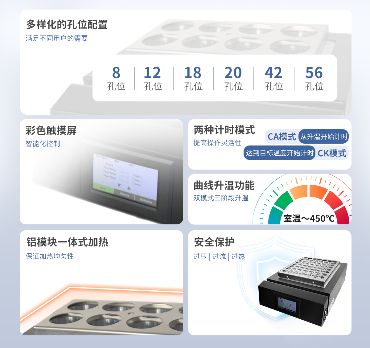 鋁模塊自動(dòng)消化裝置 YT-SX08/SX12/SX18/SX20/SX42/S56 功能特點(diǎn):