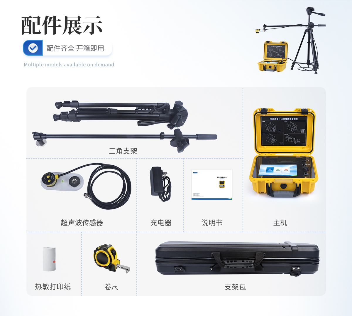 主機、傳感器探頭、三腳架、 防護包 、充電器、嵌入式打印機