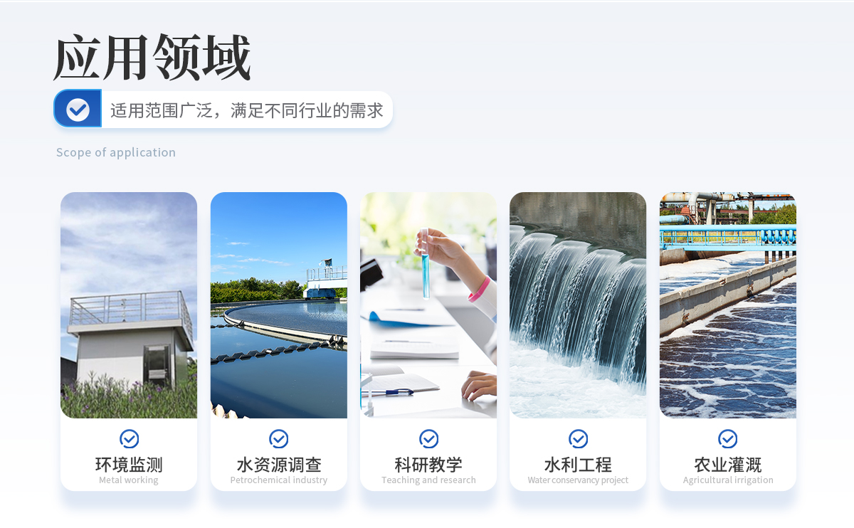 水利工程部門:監測河流、渠道、水庫的水流速度與流量; 環保部門、水質監測站以及相關環保企業:使用此類設備來監控城市排水系統、工業廢水排放的流速和流量; 第三方檢測機構:現場校準比對在線明渠流量計儀表設備; 應急管理部門:快速評估水流狀況,為防洪減災提供數據支持。