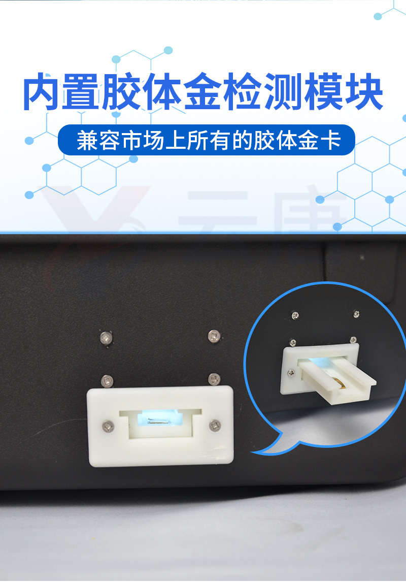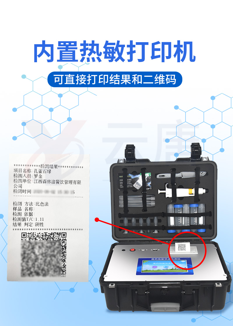 | 安卓智能操作系統(tǒng),采用更加**和人性化操作,儀器具有網(wǎng)線連接、wifi聯(lián)網(wǎng)上傳、4G無(wú)線遠(yuǎn)傳功能,快速上傳數(shù)據(jù)。 | 智能化程度高,儀器具有自檢功能:具有開(kāi)機(jī)自檢和調(diào)零功能,具有自動(dòng)檢測(cè)重復(fù)性功能。 | 新一代高速熱敏打印機(jī),檢測(cè)完成可自動(dòng)打印檢測(cè)報(bào)告和二維碼。 | 儀器帶有監(jiān)管平臺(tái),數(shù)據(jù)可局域網(wǎng)和互聯(lián)網(wǎng)數(shù)據(jù)上傳,檢測(cè)結(jié)果直接傳至食品安全監(jiān)管平臺(tái)。進(jìn)行區(qū)域食品安全監(jiān)管及大數(shù)據(jù)分析處理與數(shù)據(jù)統(tǒng)計(jì),檢測(cè)區(qū)域食品安全長(zhǎng)短期動(dòng)態(tài),達(dá)到食品安全問(wèn)題預(yù)估、預(yù)警 | 一體化便攜式快檢設(shè)備,滿足現(xiàn)場(chǎng)及流動(dòng)檢測(cè)使用需求,能夠在同一軟件下實(shí)現(xiàn)所有檢測(cè)項(xiàng)目的檢測(cè),并可通過(guò)同一窗口直觀顯示檢測(cè)結(jié)果。 | 膠體金模塊檢測(cè)方式:軌道式自動(dòng)傳輸掃描,檢測(cè)完成后自動(dòng)退出檢測(cè)卡。 | CT線自動(dòng)識(shí)別,無(wú)需手動(dòng)調(diào)整。 | 儀器具有品類多種類樣品菜單庫(kù),可靈活選擇檢測(cè)樣品,不同的檢測(cè)通道可同時(shí)檢測(cè)不同的樣品項(xiàng)目。 | 樣品處理簡(jiǎn)單省力,整體操作快速、安全、便捷。 | 儀器具有自身保護(hù)功能,可設(shè)置用戶名及密碼,防止非工作人員操作等。 | 高靈敏度,高檢測(cè)精度,高重復(fù)性精度,掃描式高精度光學(xué)傳感器。 | 內(nèi)置強(qiáng)大的數(shù)據(jù)庫(kù),可在儀器上直接選擇樣品名稱、檢測(cè)指標(biāo)、送檢單位等信息,也可在儀器上直接編輯錄入樣品名稱、檢測(cè)指標(biāo)、送檢單位等信息并保存進(jìn)樣品數(shù)據(jù)庫(kù)。 | 儀器具有重新校準(zhǔn)、鎖定、恢復(fù)出廠設(shè)置功能。 | 結(jié)果判定線可修改,對(duì)照值標(biāo)定值可保存,斷電不丟失數(shù)據(jù)。 | 兼容市場(chǎng)上所有的膠體金卡,使用耗材不受限制,極大增強(qiáng)用戶使用體驗(yàn)。 |