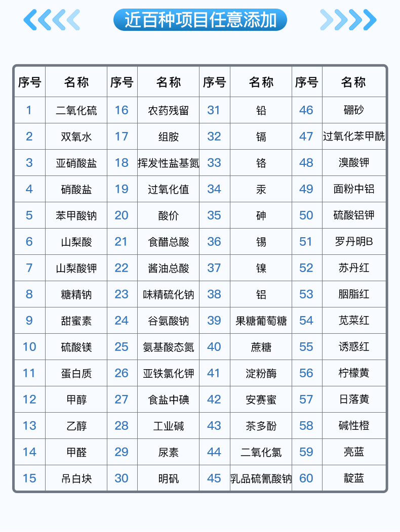 多功能食品安全分析儀 YT-SA04 檢測項目: