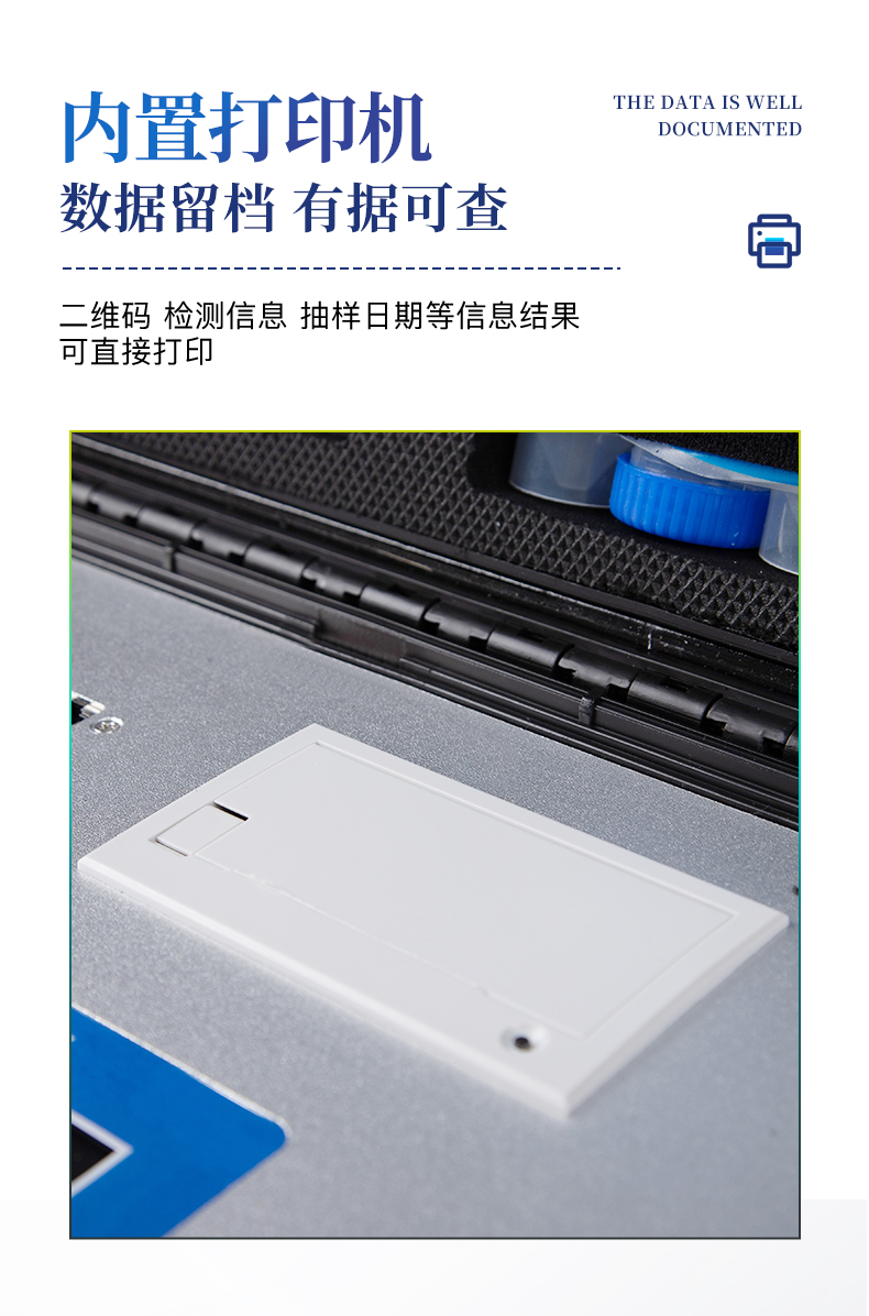 | 儀器采用手提式一體化系統(tǒng)檢測(cè)技術(shù),將分光光度模塊、新型農(nóng)殘檢測(cè)模塊、數(shù)字化管理模塊、無(wú)線通訊模塊高度集成于一體,支持檢測(cè)200種食品安全檢測(cè)項(xiàng)目,同時(shí)預(yù)留升級(jí)檢測(cè)方法。 | 儀器檢測(cè)模塊標(biāo)準(zhǔn)化、智能化,檢測(cè)項(xiàng)目可隨意自由組合。檢測(cè)箱體內(nèi)置多個(gè)標(biāo)準(zhǔn)檢測(cè)單元,檢測(cè)模塊可以調(diào)整配置。 | 顯示屏幕:儀器采用10.1英寸豎向液晶觸摸屏顯,搭配運(yùn)行安卓智能操作系統(tǒng),主控芯片采用ARM Cortex-A7,RK3288/4核處理器,主頻1.88Ghz,操作方便,性能更強(qiáng)。 | 檢測(cè)通道:≥12通道;采用精密旋轉(zhuǎn)比色池設(shè)計(jì),使用同芯片同光源校準(zhǔn)精度,解決不同光源之間的誤差值,更加準(zhǔn)確**。(1-12通道間誤差0.1%,***:**202022821055.2) | 儀器光源:高精度進(jìn)口四波長(zhǎng)冷光源,每個(gè)通道均配置 410、520、590、630nm 波長(zhǎng)光源,標(biāo)配**的光路切換裝置,專利光路切換功能可實(shí)現(xiàn)64波長(zhǎng),并且所有檢測(cè)項(xiàng)目可實(shí)現(xiàn)所有通道同時(shí)檢測(cè)。 | 設(shè)備可一鍵校準(zhǔn),自動(dòng)保存校準(zhǔn)數(shù)據(jù),自動(dòng)對(duì)比校驗(yàn),得到精準(zhǔn)光源,采用Android SP存儲(chǔ)數(shù)據(jù),光源數(shù)據(jù)永不丟失,方便每一次使用。 | 通訊接口:配備無(wú)線通信模塊、4G(APN)通訊模塊、藍(lán)牙傳輸,同時(shí)具有雙USB接口以及RJ45網(wǎng)線接口,可以多方式實(shí)現(xiàn)數(shù)據(jù)保存及數(shù)據(jù)傳輸 | 存儲(chǔ)方式:支持U盤(pán)存儲(chǔ),標(biāo)準(zhǔn)USB接口,免驅(qū)動(dòng)安裝。檢測(cè)結(jié)果存儲(chǔ)容量20萬(wàn)條以上,可生成Excel表格進(jìn)行拷貝,并具有登錄保護(hù)功能。 | 智能化操作系統(tǒng): | 1)操作系統(tǒng):儀器可在同一檢測(cè)界面自動(dòng)對(duì)應(yīng)相關(guān)檢測(cè)通道,一次性選擇1-12個(gè)樣品名稱,無(wú)需退出界面,節(jié)省操作時(shí)間。并可以對(duì)每個(gè)通道屬性和樣品信息單獨(dú)進(jìn)行編輯,例如送檢單位、人員,檢測(cè)人員等,打印時(shí)勾選打印顯示。 | 2)數(shù)據(jù)集成系統(tǒng):設(shè)備首頁(yè)自動(dòng)匯總分析檢測(cè)數(shù)據(jù),包含:周檢測(cè)數(shù)據(jù)、月檢測(cè)數(shù)據(jù),全部檢測(cè)總數(shù)量,均包含檢測(cè)總數(shù),合格數(shù),不合格數(shù),以及相關(guān)柱形分析圖,各項(xiàng)檢測(cè)數(shù)據(jù)一目了然,無(wú)需電腦查詢,更加快捷直觀。 | 3)數(shù)據(jù)庫(kù)系統(tǒng):十幾項(xiàng)數(shù)據(jù)庫(kù)分類管理儀器:包含項(xiàng)目類型、項(xiàng)目數(shù)據(jù)、檢測(cè)數(shù)據(jù)、歷史記錄、國(guó)標(biāo)信息、曲線信息、采樣信息、檢測(cè)信息、受檢信息、復(fù)核信息、圖表信息、光源校準(zhǔn)信息、打印樣式信息、樣品庫(kù)信息等等,數(shù)據(jù)庫(kù)之間互相協(xié)調(diào)聯(lián)動(dòng)保證數(shù)據(jù)的真實(shí)完整性。同時(shí)產(chǎn)品數(shù)據(jù)庫(kù)以及歷史檢測(cè)記錄支持一鍵檢索功能。 | 4)限量規(guī)判系統(tǒng):具有限量查詢、添加物質(zhì)合規(guī)判定系統(tǒng)。檢測(cè)出結(jié)果后,系統(tǒng)自動(dòng)調(diào)用系統(tǒng)數(shù)據(jù)庫(kù)中相關(guān)國(guó)標(biāo)進(jìn)行比對(duì)判定,客觀顯示判定結(jié)果是否合格。 | 5)項(xiàng)目預(yù)設(shè)系統(tǒng):儀器具有任務(wù)預(yù)設(shè)模塊,一鍵提前預(yù)設(shè),給出方便快捷的新檢測(cè)方案,每一個(gè)任務(wù)分別可以設(shè)置不同的樣品、批次、編號(hào)、來(lái)源、備注、抽樣信息、檢測(cè)信息、受檢信息、復(fù)核信息等更多信息。樣品送檢時(shí)一鍵調(diào)取保存信息,并可多次調(diào)取,大大提高檢測(cè)效率。 | 6)數(shù)據(jù)監(jiān)管系統(tǒng):同步對(duì)接監(jiān)管平臺(tái),數(shù)據(jù)可局域網(wǎng)和互聯(lián)網(wǎng)數(shù)據(jù)上傳,檢測(cè)結(jié)果可選擇直接傳至食品安全監(jiān)管平臺(tái)。進(jìn)行區(qū)域食品安全監(jiān)管及大數(shù)據(jù)分析處理與數(shù)據(jù)統(tǒng)計(jì),檢測(cè)區(qū)域食品安全長(zhǎng)短期動(dòng)態(tài),達(dá)到食品安全問(wèn)題預(yù)估、預(yù)警。 | 7)打印系統(tǒng):內(nèi)置全新打印機(jī),新創(chuàng)自定義打印方式,可按需靈活勾選控制:產(chǎn)品合格證(國(guó)家農(nóng)業(yè)部標(biāo)準(zhǔn)要求),二維碼,抽樣信息、檢測(cè)信息,受檢信息、復(fù)核信息、抽樣日期、檢測(cè)日期等信息的打印。 | 供電模式:儀器交直流兩用,直流12V供電,可連接車載電源,可配6ah大容量充電鋰電池,電量可實(shí)時(shí)顯示,方便戶外流動(dòng)測(cè)試。 | 膠體金檢測(cè)模塊:采用雙通道CMOS成像處理技術(shù)及膠體金免疫層析技術(shù),可同時(shí)讀取雙膠體金卡數(shù)據(jù),自動(dòng)采集、處理分析,將檢測(cè)結(jié)果顯示,并可根據(jù)參考限值自動(dòng)判斷檢測(cè)結(jié)果,可檢測(cè)常見(jiàn)的獸藥殘留、生物毒素、抗生素、違禁添加物等。 | 1)探測(cè)技術(shù):CMOS成像探測(cè); | 2)檢測(cè)通道:1個(gè)通道; | 3)檢測(cè)方式:消線法和比色法; | 4)顯示模式:陰性或陽(yáng)性