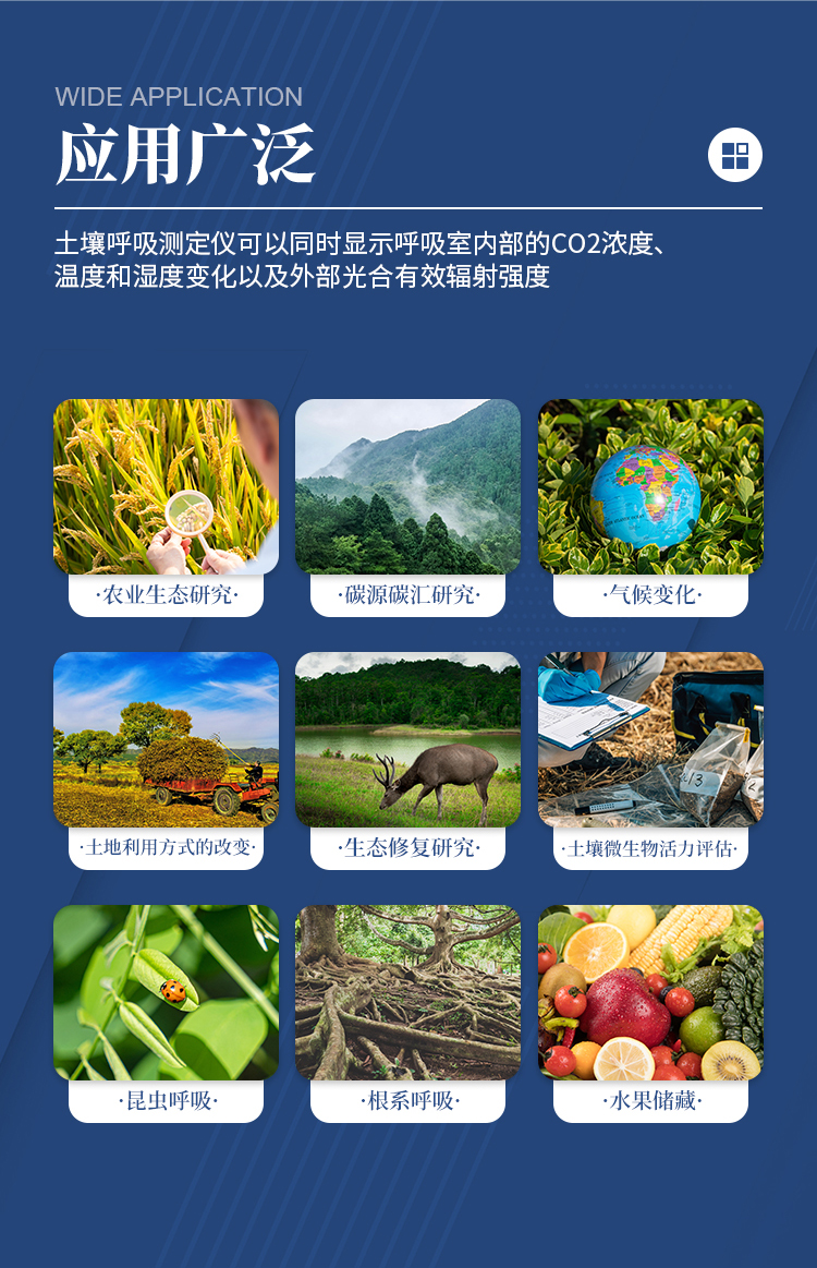 土壤呼吸是土壤生態系統碳素循環的一個重要過程,是土壤碳素同化異化平衡作用的結果,也是碳素由陸地生態系統返回大氣的主要途徑,是土壤中生命活動的表征,準確測定其釋放量是評價生態系統中生物學過程的關鍵;通過對土壤呼吸及其相關參數的監測,可估測根系和土壤微生物對氣候變化的響應。