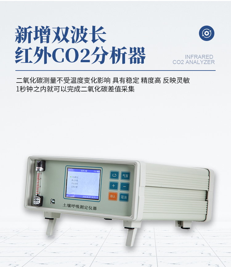 加入了溫度調節的雙波長紅外二氧化碳分析器, 測量范圍:0-3000ppm,分辨率:0.1ppm; 精度3ppm。二氧化碳測量不受溫度變化影響,具有穩定、精度高,反映靈敏,1秒鐘之內就可以完成二氧化碳差值采集。