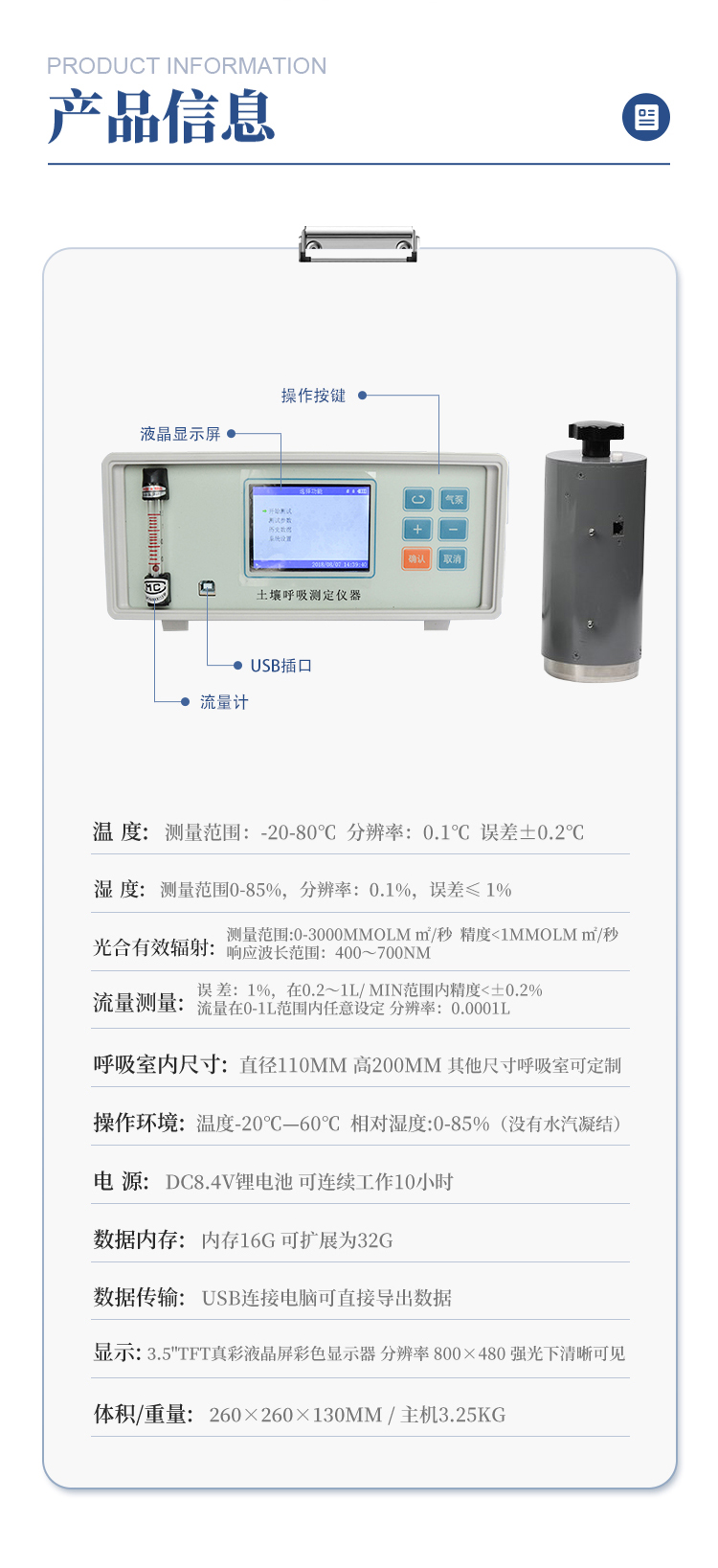 土壤呼吸器:直徑100mm,高度200mm。 其他尺寸可定制