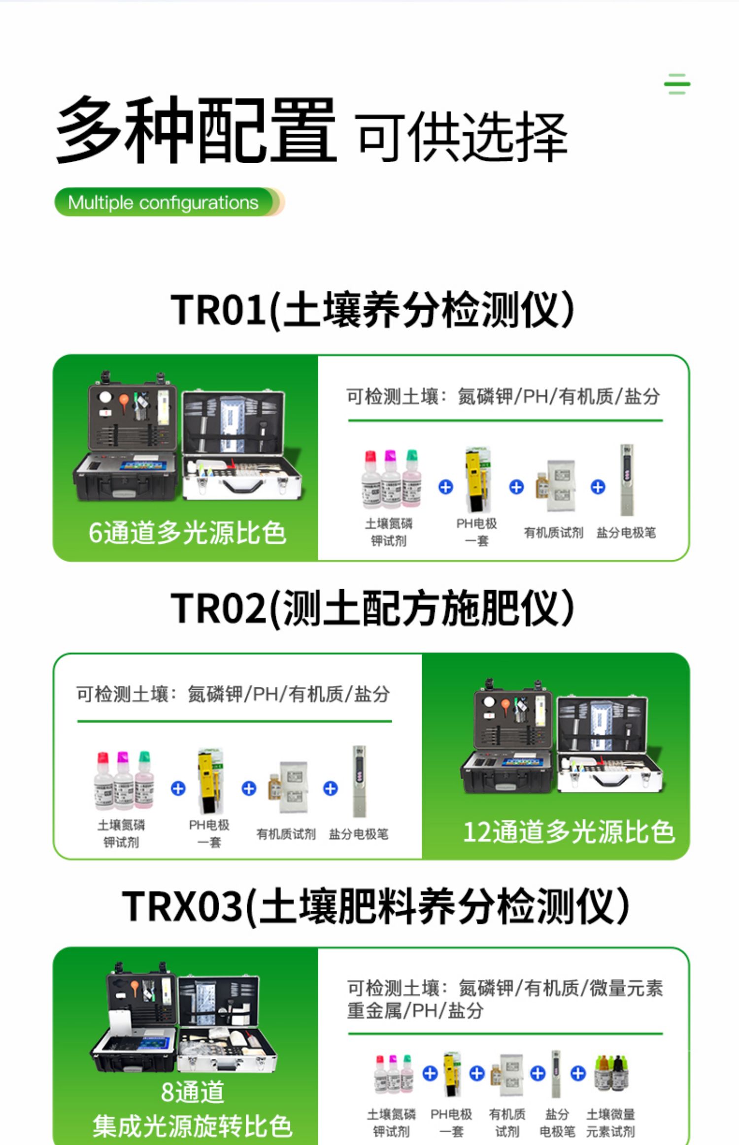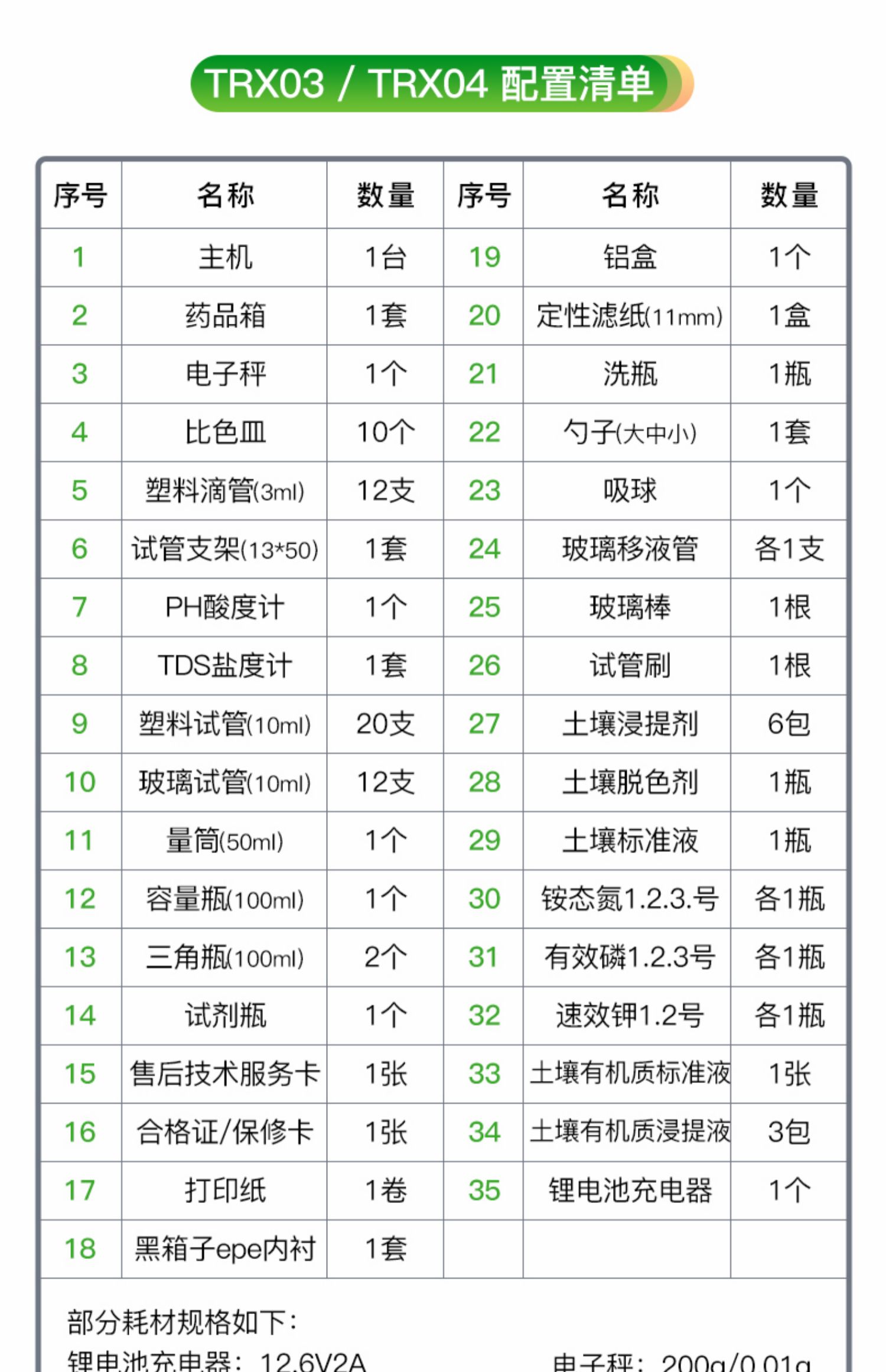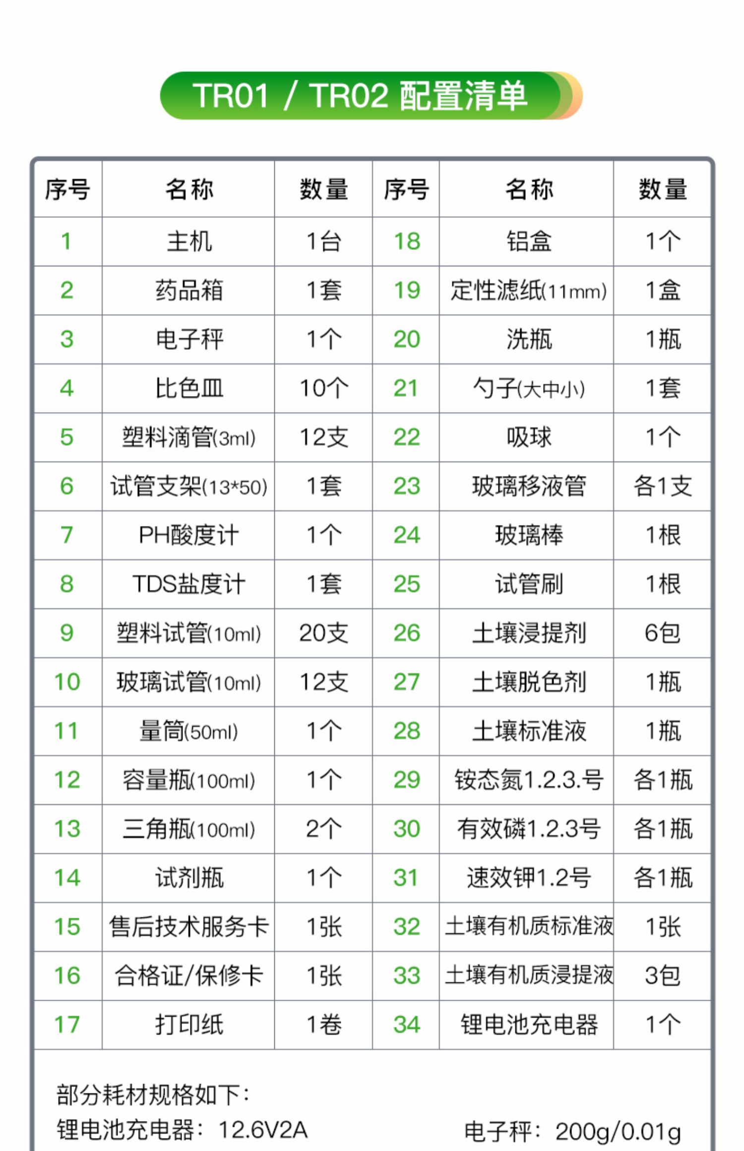 | 2 | PH計(jì) | 1支 | 2 | 氮磷鉀有機(jī)質(zhì)試劑 | 1套 |