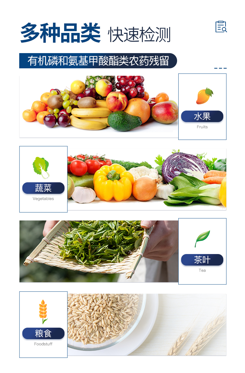 山東云唐智能科技有限公司生產的農藥殘留檢測儀廣泛應用于主要用于蔬菜、水果、茶葉、糧食、農副產品等食品中農藥殘留的快速檢測,依據國標GB/T5009.199-2003進行檢測,適用于果蔬茶生產基地以及農貿批發銷售市場現場檢測,餐館、學校、食堂、家庭果蔬加工前的安全速測等。