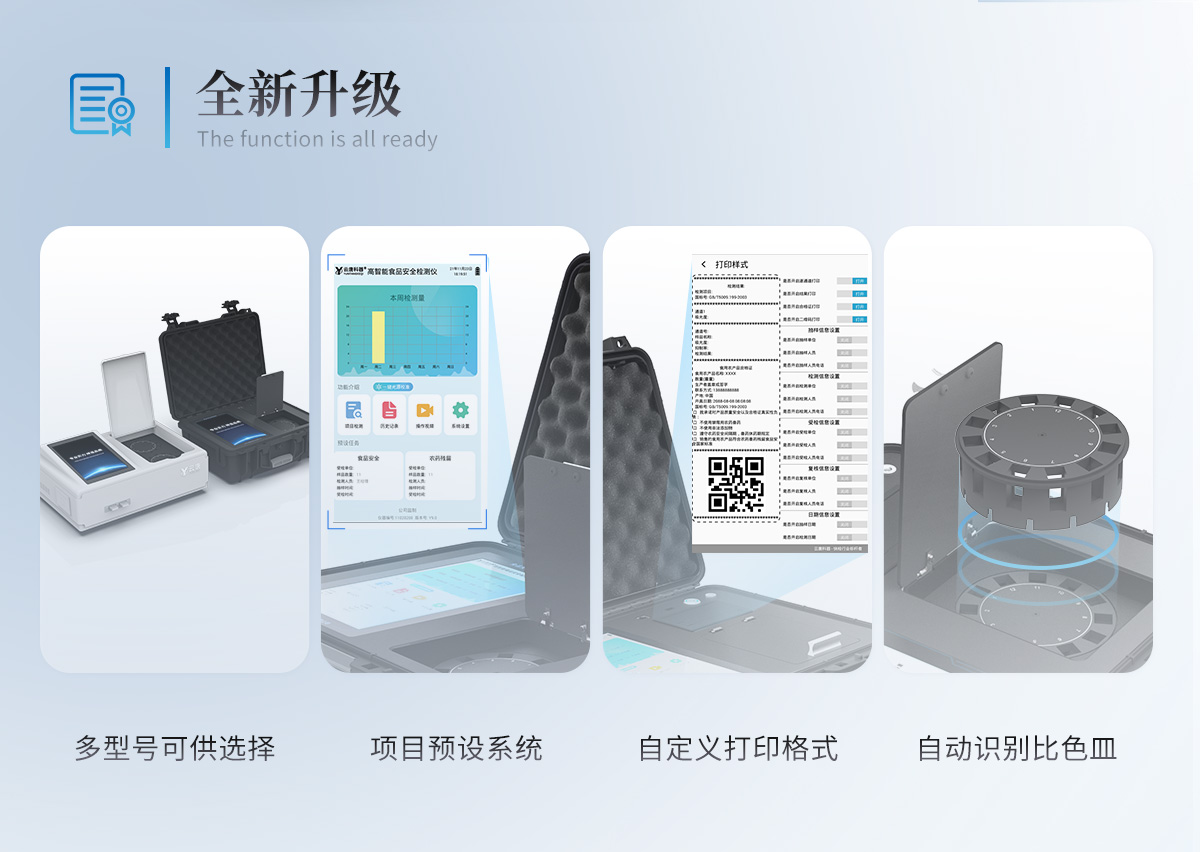 產品介紹: 全新升級食品安全檢測儀結果判定線可修改,對照值標定值可保存,斷電不丟失數據。2025-10-26