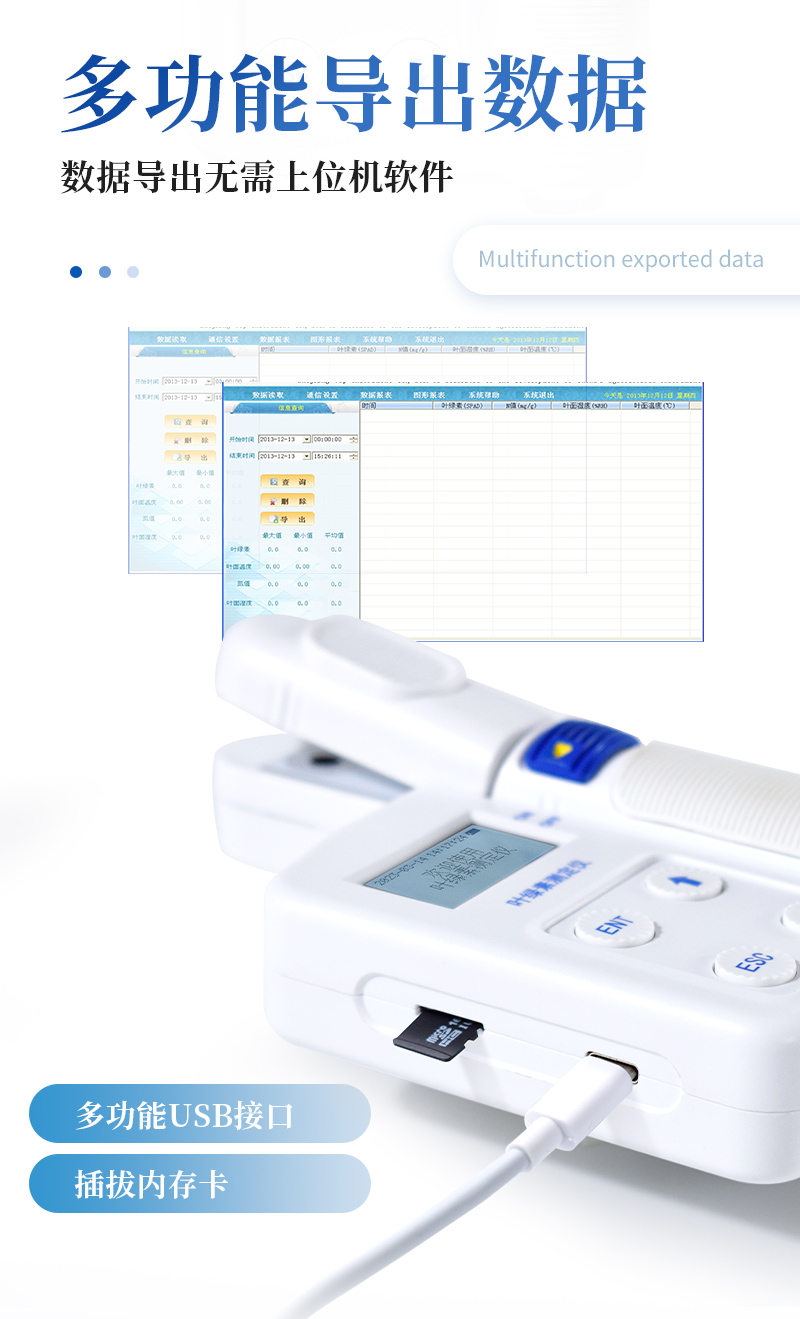 5.多功能USB接口,可實(shí)現(xiàn)數(shù)據(jù)導(dǎo)出與充電功能,可將儀器與電腦直接聯(lián)機(jī),數(shù)據(jù)導(dǎo)出無(wú)需上位機(jī)軟件,還可選擇使用內(nèi)存卡直接導(dǎo)出數(shù)據(jù),操作簡(jiǎn)單方便