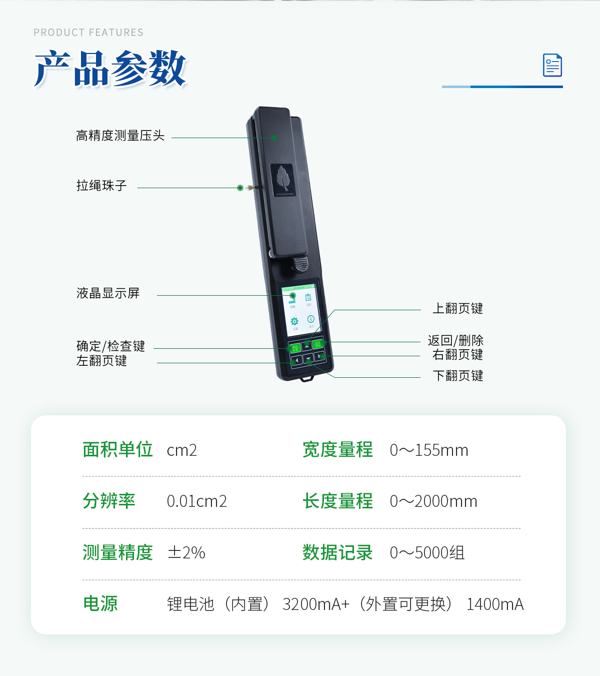 測量精度:1%(大于30cm2),2%(小于30cm2)