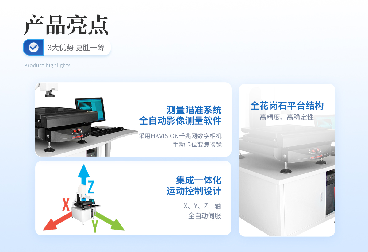 產品介紹: 儀器特點:? 三軸均采用精密型直線導軌、精密級滾珠絲桿傳動,噪音低振動小,動態幾何誤差變形*小。? 采用優質花崗巖大理石底座、立柱,具有良好的溫度穩定性、抗實效變形能力 。? 采用花崗···2025-10-26