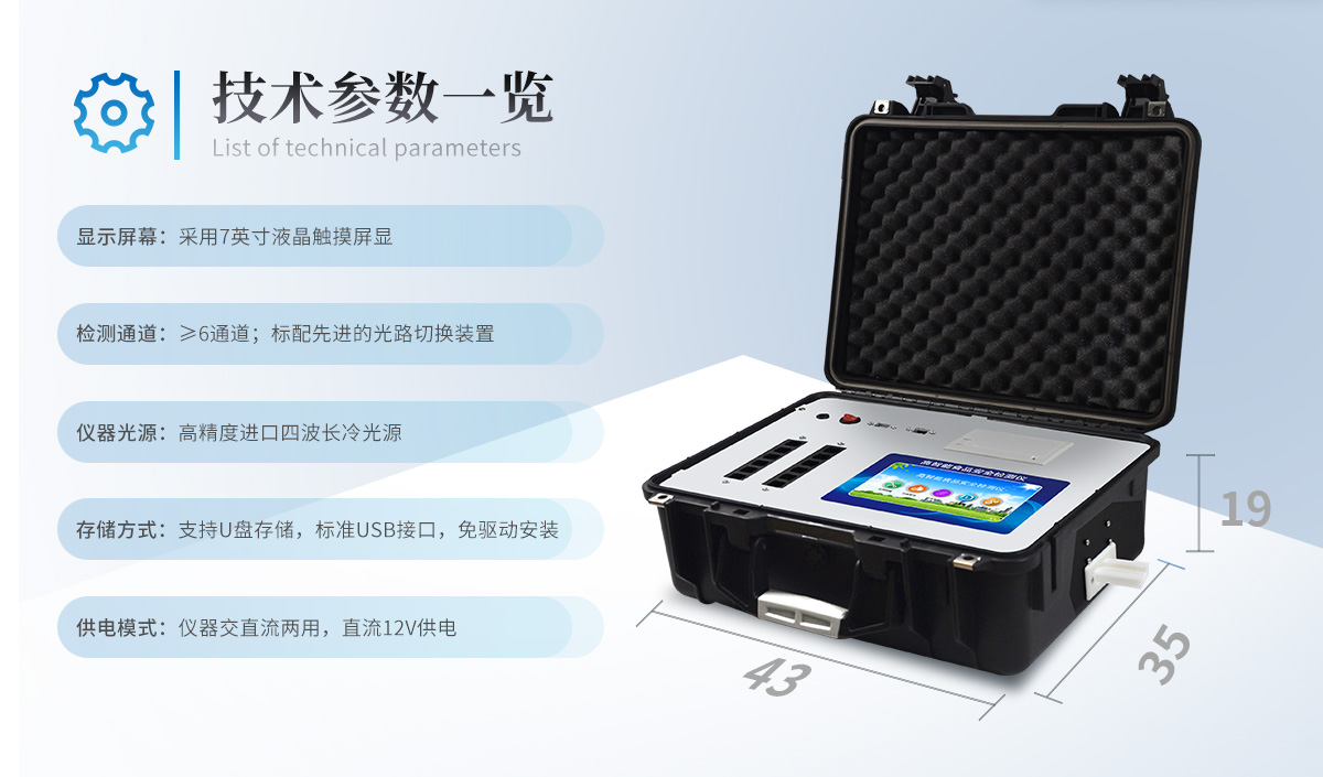 | 主控芯片采用ARM Cortex-A7,RK3288/4核處理器,主頻1.88Ghz,運轉(zhuǎn)速度更快速,穩(wěn)定性更強。 | 顯示方式:7英寸液晶觸摸屏顯示,人性化中文操作界面,讀數(shù)直觀、簡單。 | 交直流兩用,直流12V供電,可連接車載電源,可配6ah大容量充電鋰電池,方便戶外流動測試。 | 四波長冷光源,6個檢測通道,每個通道均配置410、520、590、630nm波長光源,標(biāo)配**的光路切換裝置,專業(yè)光路切換功能可實現(xiàn)*多64波長,并且所有檢測項目可實現(xiàn)所有通道同時檢測。 | 智能恒流穩(wěn)壓,光強自動調(diào)節(jié)與校準(zhǔn),長時間連續(xù)工作光源無溫漂現(xiàn)象。 | 內(nèi)置新國家限量標(biāo)準(zhǔn),與所測結(jié)果進行現(xiàn)場比對,并持續(xù)更新標(biāo)準(zhǔn)。 | 不間斷進樣,連續(xù)檢測 | 樣本編號自動累加。 | 數(shù)據(jù)無線上傳平臺,并可從平臺導(dǎo)出為Excel表格。 | 檢測結(jié)果存儲容量20萬條 | 同時支持U盤拷貝,標(biāo)準(zhǔn)USB接口,免驅(qū)動插拔。 | 檢測項目可擴充,固件可升級 | 儀器尺寸:43×35×19cm, 主機凈重:5.1kg |