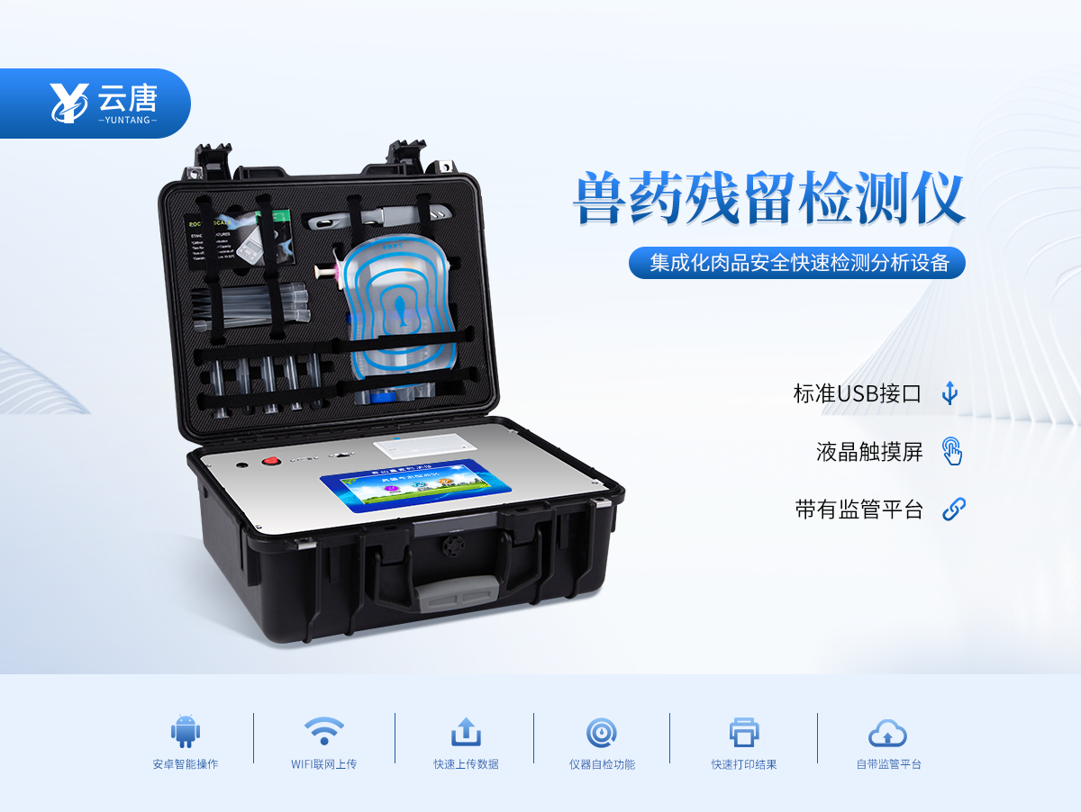 該獸藥殘留檢測儀適用于豬、雞、鴨、羊、牛、牛奶等畜禽肉產品中獸藥殘留,包括抗生素類殘留、瘦肉精激素類殘留和水產品有毒有害物質的現場快速篩查定及性定量檢測。 該多功能獸藥殘留檢測儀為集成化肉品安全快速檢測分析設備,可廣泛應用于畜牧養殖場、屠宰場、食品肉產品深加工企業、食藥監局、檢驗檢疫部門、衛生部門、高教院校、科研院所、農業部門等單位使用。