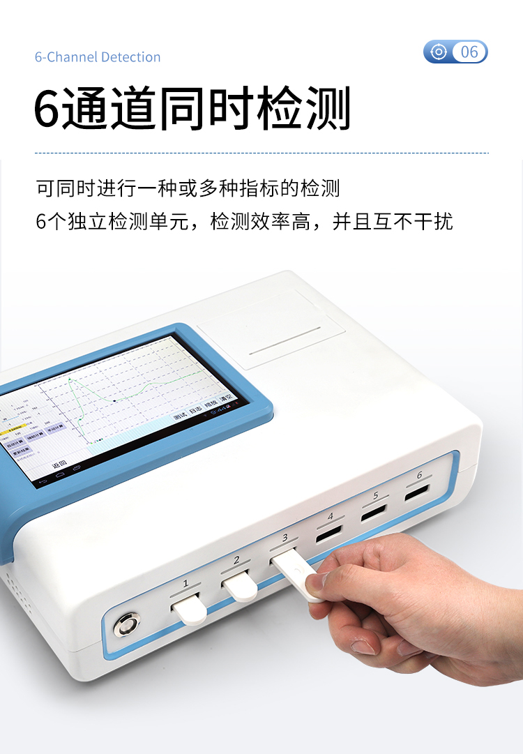| 一體化設計,集成孵育和檢測功能同時進行,孵育完成直接檢測; | 全中文 7英寸高清液晶顯示,觸摸屏操作; | Android 系統,支持在線升級,可WIFI聯網; | 檢測原理:熒光定量免疫層析法; | 6通道設計,可同時進行一種或多種指標的檢測,6個獨立檢測單元,檢測效率高,并且互不干擾; | 具有二維碼自動識別系統,可直接識別檢測項目、檢測流程等信息; | 儀器自帶熱敏打印機,檢測結果可實時打印; | 具有檢測數據存儲(存儲數量不少于 10000 條)、查詢、批量數據處理和打印功能; | 儀器≥2 個USB 接口,可拷貝結果及原始數據,具有 wifi 接入模塊,可通過無線連接網 絡實現數據上傳; | 分鐘內達到工作狀態(37℃),封閉系統,不受外界環境(光、熱)干擾,工作環境溫度:0-30℃; | 真菌毒素和重金屬可同時進行前處理,并同時上機檢測; | 儀器配備全套前處理設備,拉桿箱設計,即可用于實驗室檢測可以外出攜帶檢測 | 相對極差≤10%; | 重復性 CV≤1%; | 批間變異≤3%; | 尺寸310x210x93mm |